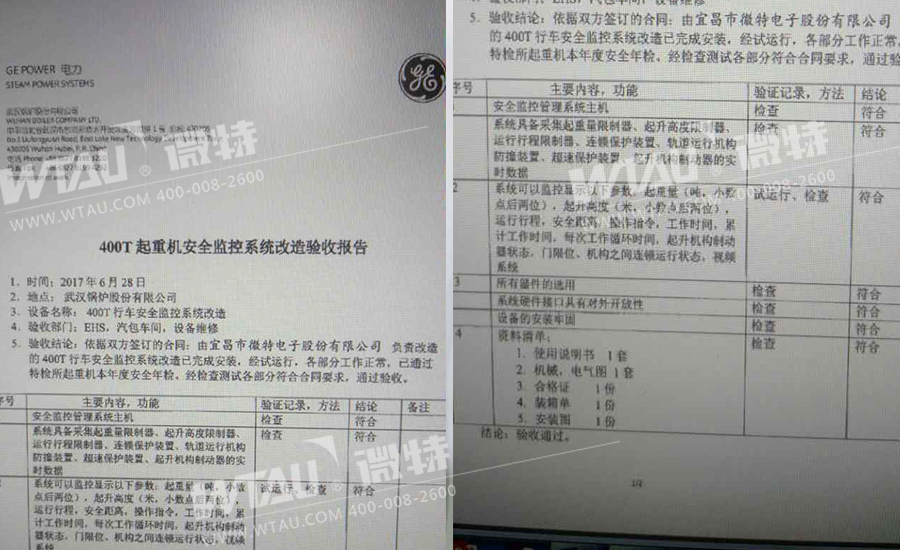 繼2016年GE集團(tuán)阿爾斯通高壓電器設(shè)備(武漢)有限公司400t橋機(jī)監(jiān)控系統(tǒng)項(xiàng)目順利完工后,2017年4月份GE公司在武漢的又一重大起重機(jī)安全監(jiān)控系統(tǒng)改造項(xiàng)目成功落戶微特電子并順利驗(yàn)收。