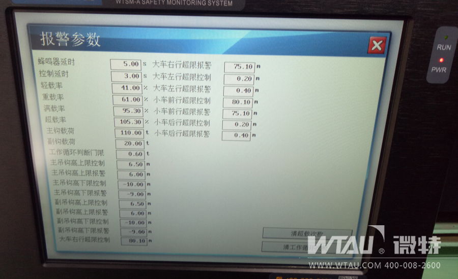 對(duì)橋機(jī)起重量、起升高度、運(yùn)行行程、機(jī)械限位、操作指令監(jiān)控
