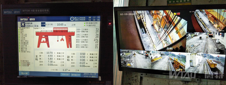 改造后的門機(jī)安全監(jiān)控系統(tǒng)主機(jī)部分及實(shí)時(shí)視頻監(jiān)控顯示