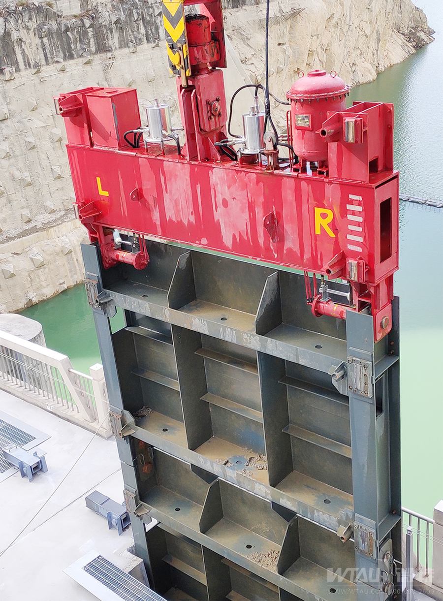 這次改造的進水口兩臺3200kN/650kN門機,主鉤用于提落機組檢修門,回轉吊用于提落攔污柵、疊梁門。由于每年需要進行一次攔污柵清理,兩次疊梁門提落,回轉吊使用頻率高?;剞D吊水下抓梁工作深度較深,使用過程中無法直接獲取水下抓梁就位及穿脫銷情況,水下存在異物時操作風險較大。