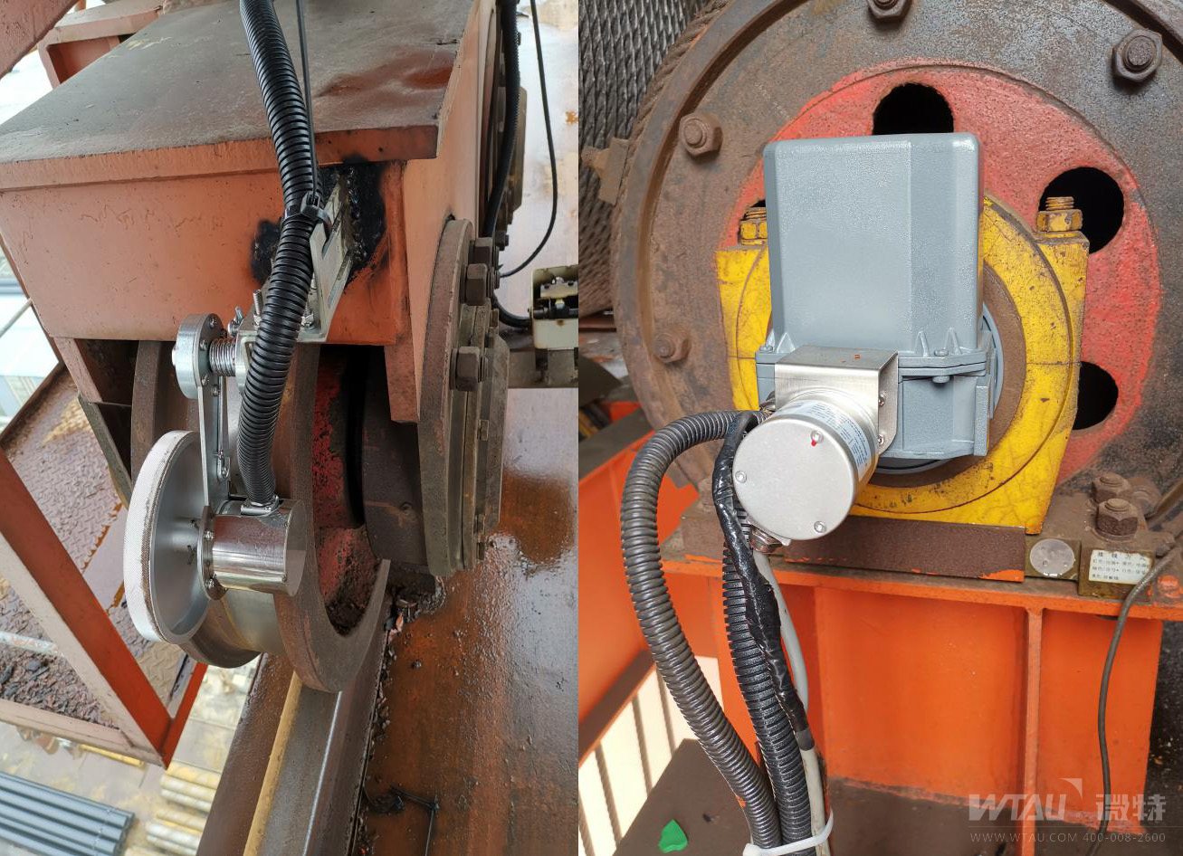 上下小車及大車行程采用計(jì)程輪的方式采集其數(shù)據(jù),高度采用多功能行程限位器加編碼器的方式采集其高度數(shù)據(jù)。同時(shí)采集其速度等相關(guān)數(shù)據(jù),使操作人員可以通過(guò)直觀的數(shù)據(jù)變化觀察其大小車的位置,每個(gè)鉤的高度等相關(guān)數(shù)據(jù),為設(shè)備的安全運(yùn)行提供更加安全的保障。