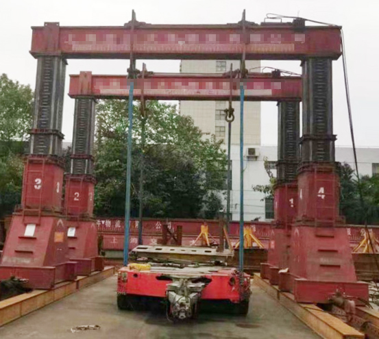 全液壓式門(mén)式起重機(jī)起重量單梁175t,雙梁起吊可達(dá)400t,整個(gè)門(mén)機(jī)使用液壓油為動(dòng)力進(jìn)行雙梁之間的跨度調(diào)節(jié),單梁兩鉤距的調(diào)節(jié),起升高度的調(diào)節(jié),大車軌道和起重量可根據(jù)現(xiàn)場(chǎng)起重需求任意更換,適合多種復(fù)雜環(huán)境下的作業(yè)。整機(jī)供電之后無(wú)任何電氣控制回路,各動(dòng)作均為手柄操作直接驅(qū)動(dòng)液壓換向閥完成。