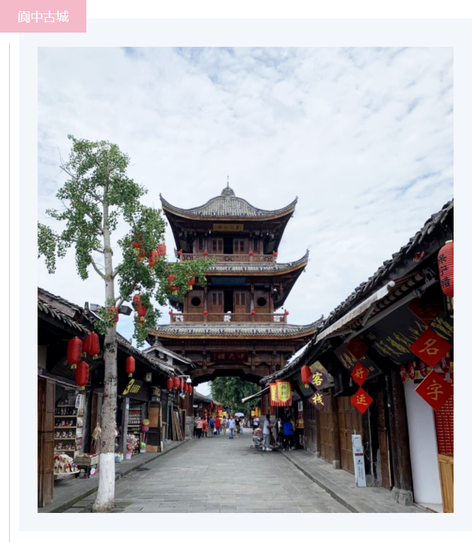 嘉陵江的美,由古至今。閬中,更是嘉陵江上的一顆明珠,雄踞嘉陵江中游,嘉陵江縱貫其南北,也是四川省內的歷史文化古城。在生產上是四川省蠶繭基地縣和全國油桐基地縣之一?!睎|河桐油“透明度好,碘質高,在國際市場上有較好的聲譽。閬中的絲綢生產已有一千多年的歷史。釀造業(yè)也興旺發(fā)達,特別是暢銷中外的名特產保寧醋,具有300多年的歷史。