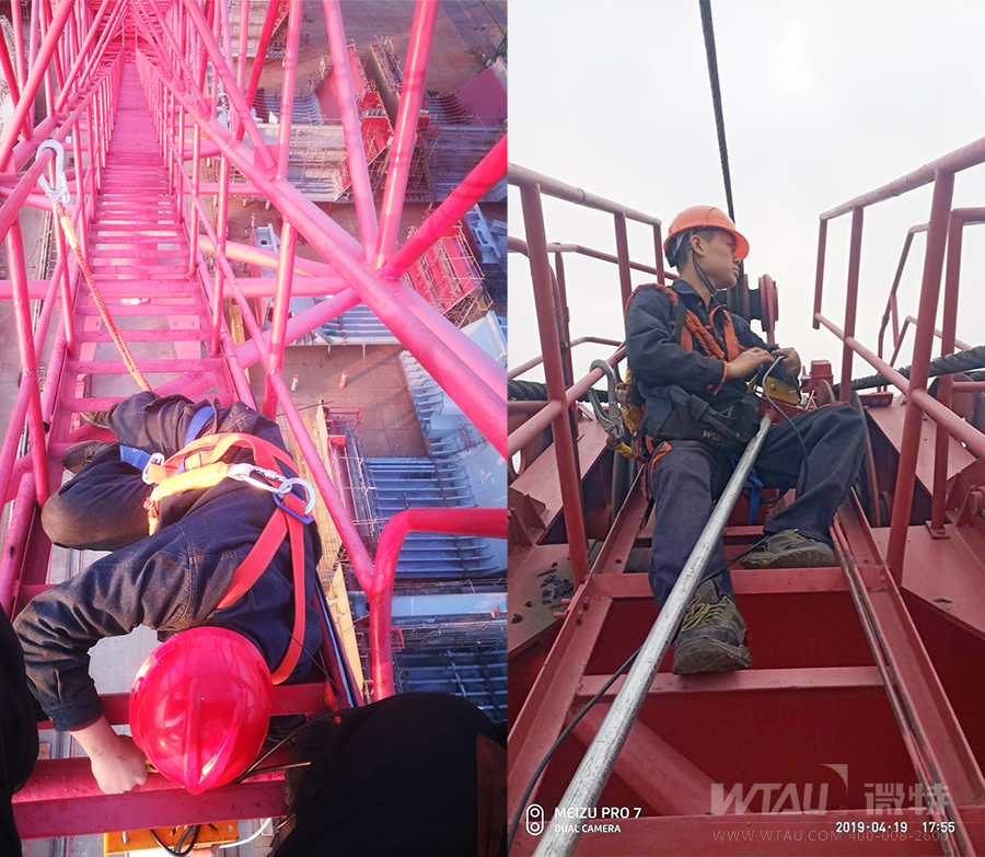 港口門座式起重機(jī),對(duì)船臺(tái)上的小物品吊裝以及上下貨物也起著至關(guān)重要的作用!港口門座機(jī)高度高,沒有電梯,只能徒手多趟搬運(yùn).面對(duì)特檢要求的力矩吊點(diǎn)區(qū)域的全方位覆蓋要求,微特人員運(yùn)用熟練的經(jīng)驗(yàn)以專業(yè)的技能爬到高60米長(zhǎng)60米的臂桿根部,將球機(jī)攝像頭固定在上面,使得吊點(diǎn)區(qū)域全方位無死角都能覆蓋到。