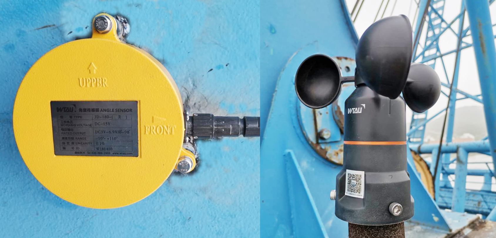 ▲安裝在門座機(jī)上的角度傳感器及風(fēng)速傳感器