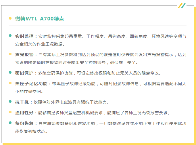 微特作為起重機(jī)安全監(jiān)控管理系統(tǒng)品牌的領(lǐng)導(dǎo)者,一直致力于為客戶提供有價(jià)值的產(chǎn)品和服務(wù)。希望通過我們的產(chǎn)品將起重機(jī)安全事故率降到最低,為客戶提供更加可靠的安全管理解決方案。