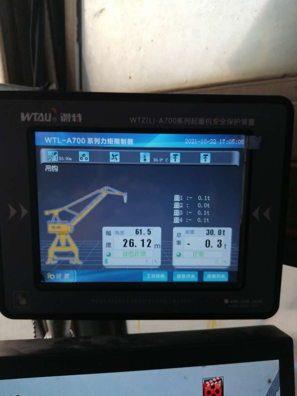 力矩限制器工作后,為客戶實(shí)時提供門座機(jī)工作狀態(tài)信息,對起吊超載、風(fēng)速超速、力矩超最大、最小幅度進(jìn)行報警斷電保護(hù),幫助門座機(jī)實(shí)現(xiàn)高效作業(yè)和更安全的起重保障。目前,項目已經(jīng)完成驗收投入使用。