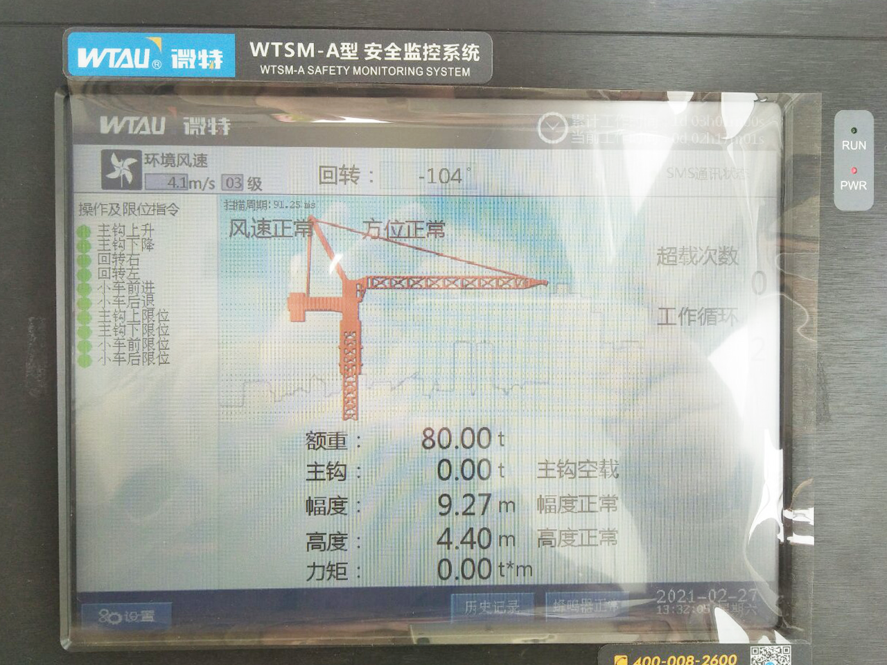 該重工科技公司研發(fā)生產(chǎn)的平臂塔,在施工作業(yè)上應(yīng)用廣泛,由微特技術(shù)自主研發(fā)的WTSM-A安全監(jiān)控系統(tǒng)針對(duì)平臂塔,具有安裝簡(jiǎn)便、實(shí)用方便、傳感器抗干擾能力出眾且穩(wěn)定性好,具體功能如下: