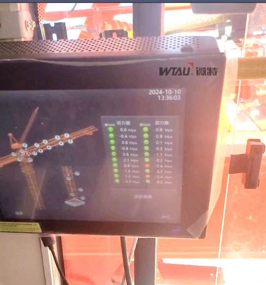 在交付儀式現(xiàn)場(chǎng),相關(guān)負(fù)責(zé)人介紹道:“22000噸米級(jí)超大型塔機(jī)充分運(yùn)用數(shù)字化、智能化、綠色化前沿技術(shù),基于視覺、雷達(dá)多模態(tài)融合的主動(dòng)防護(hù)安全技術(shù)、大數(shù)據(jù)的塔機(jī)故障診斷技術(shù)等,塔機(jī)實(shí)現(xiàn)全域安全?!边@些數(shù)字化、智能化前沿化技術(shù)應(yīng)用,就包括微特研發(fā)的金屬結(jié)構(gòu)應(yīng)力監(jiān)測(cè)系統(tǒng)。