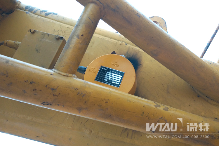 圖中黃色圓形件為安裝在該履帶吊臂桿上的WT-JD-180角度傳感器