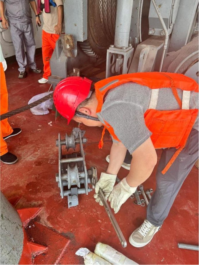 安裝完成后,微特工程師還帶著鋼絲繩在線檢測系統(tǒng)對改船上的鋼絲繩進行了免費測試,針對水下作業(yè)中鋼絲繩易刮碰的問題,出具專業(yè)監(jiān)測診斷意見,進一步保障船舶作業(yè)安全。