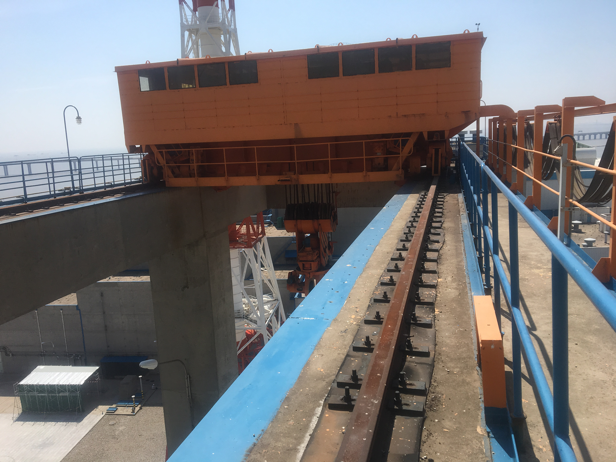 小車(chē)行程使用漫反射進(jìn)口激光傳感器,激光傳感器安裝于小車(chē)行走機(jī)構(gòu)的頂端,同時(shí)在小車(chē)行走軌道的終端安裝一個(gè)反光膜,將激光傳感器發(fā)射的紅外線信號(hào)反射,經(jīng)過(guò)通信把實(shí)際數(shù)據(jù)顯示到司機(jī)室顯示器。司機(jī)室工控機(jī)實(shí)時(shí)監(jiān)測(cè)小車(chē)行程數(shù)據(jù),并在行程到達(dá)預(yù)設(shè)點(diǎn)位置時(shí)聲光報(bào)警,并輸出控制小車(chē)行走,避免發(fā)生危險(xiǎn)。