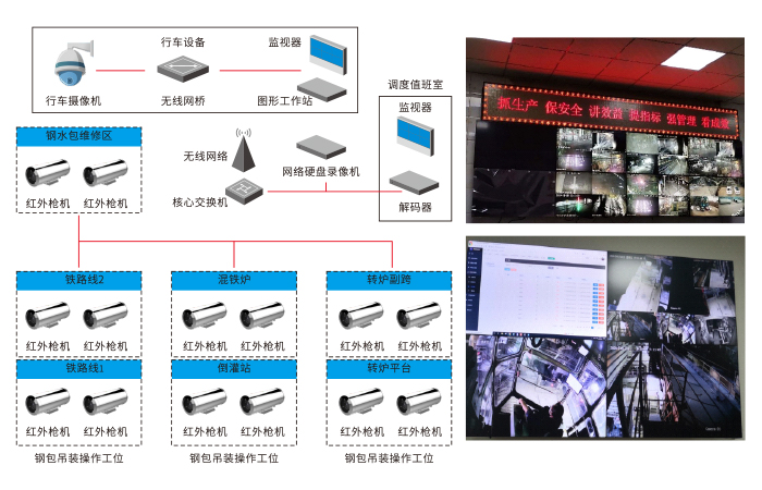 建立行車、指吊室、主控室三地共享的高速無線局域網(wǎng),實(shí)現(xiàn)行車、指吊室、主控室三地視頻的同步實(shí)時(shí)顯示。