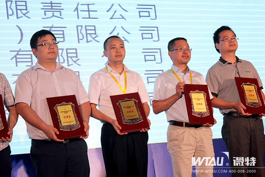 微特電子市場總監(jiān)李彬(中)上臺接受頒獎(jiǎng)