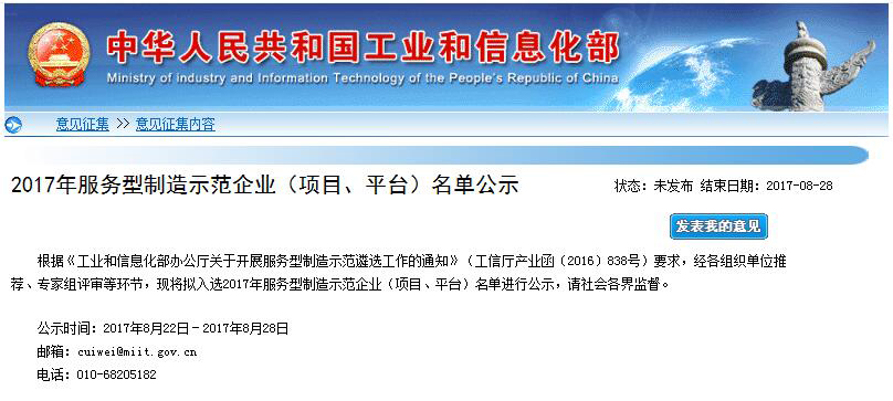 服務(wù)型制造示范平臺是工信部為貫徹落實《中國制造2025》關(guān)于發(fā)展服務(wù)型制造的戰(zhàn)略部署,按照《發(fā)展服務(wù)型制造專項行動指南》的目標要求,遴選面向社會提供公共服務(wù)或面向市場提供專業(yè)服務(wù)的生產(chǎn)性服務(wù)機構(gòu)為示范平臺。