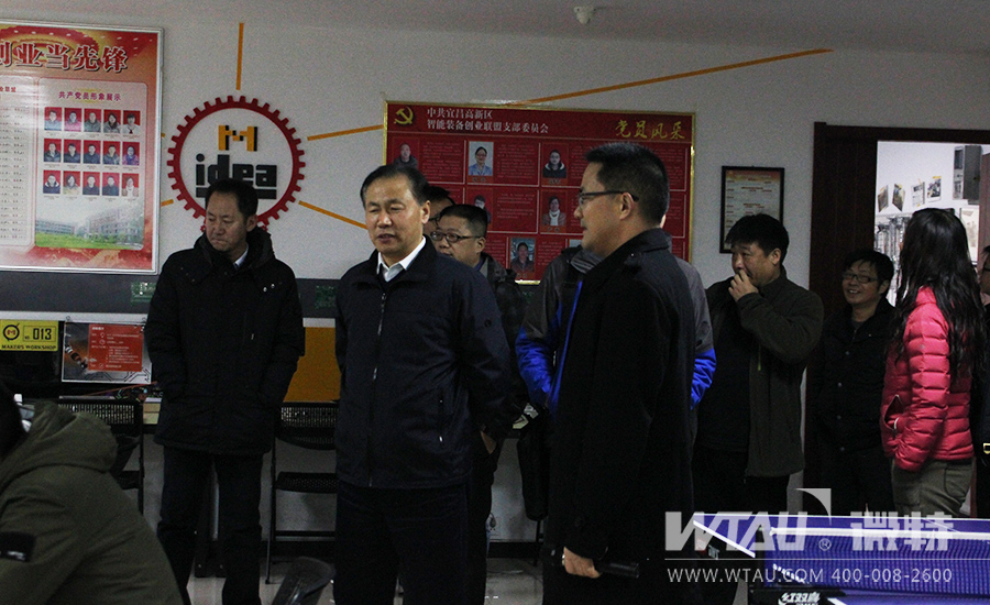 微特電子聶總向來(lái)訪領(lǐng)導(dǎo)和專家介紹微特眾創(chuàng)工坊的建設(shè)和使用情況