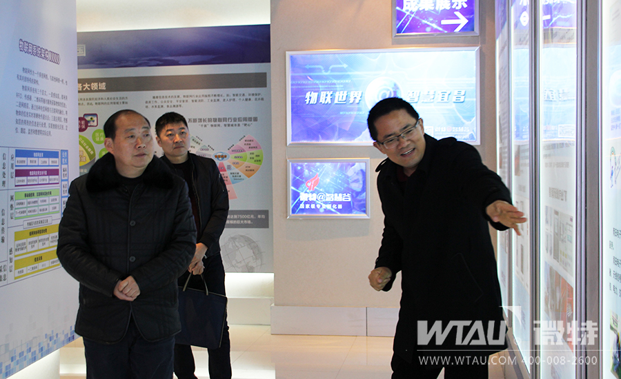 在孵化器展示廳聶總向黃書記介紹傳感物聯(lián)相關(guān)的在孵企業(yè)