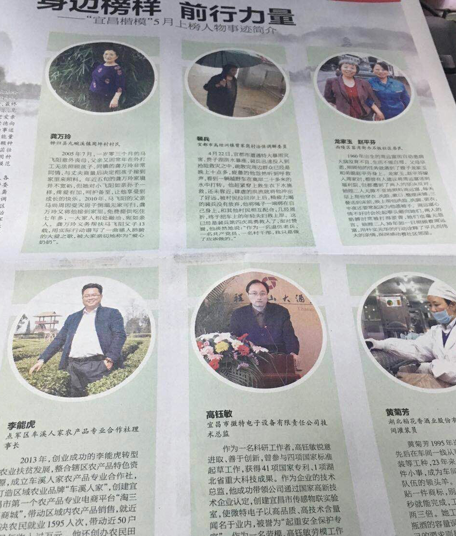 而在本期的第A11版德耀中華“身邊榜樣、前行力量”專題中,微特技術總監(jiān)高鈺敏先生榮登“宜昌楷模”5月上榜人物。