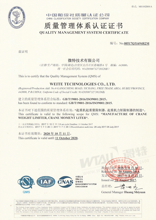 2018年9月12日,微特技術(shù)有限公司品控部收到由中國(guó)船級(jí)社認(rèn)證公司寄來的微特技術(shù)有限公司ISO9001:2015質(zhì)量管理體系證書,標(biāo)志著公司順利通過2018年度的質(zhì)量體系船級(jí)社審核。