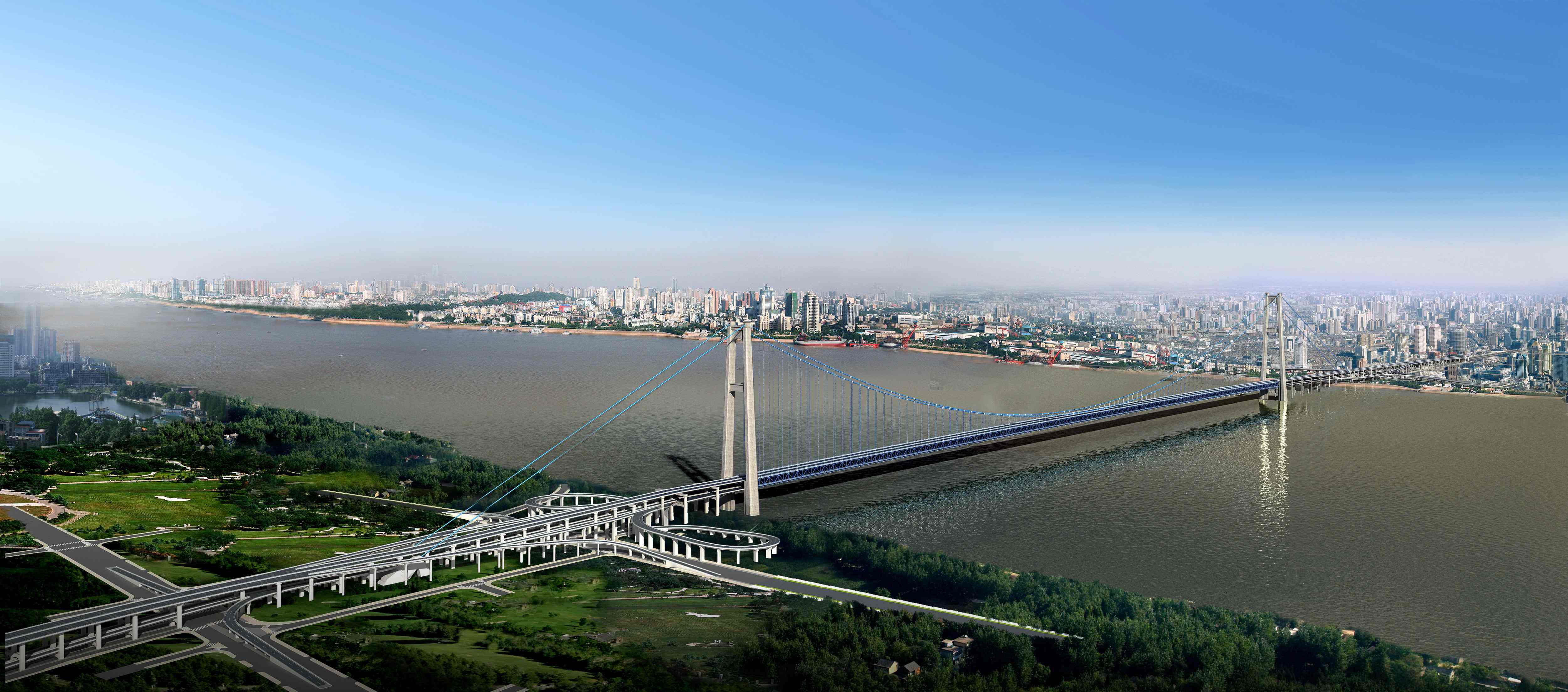 楊泗港長江大橋位于武漢白沙洲大橋和鸚鵡洲大橋之間,起點(diǎn)設(shè)在漢陽國博立交,從漢陽漢新大道跨鸚鵡大道、濱江大道過江,武昌岸跨過八鋪街堤、武金堤后,止于八坦立交,連接武漢三鎮(zhèn)中的漢陽區(qū)和武昌區(qū)。楊泗港長江大橋總長約4.32公里,是武漢第一座雙層公路橋,即上下兩層都走汽車,共12條汽車道,兩側(cè)設(shè)置觀光步行道。楊泗港大橋采取一跨跨越長江的方案,跨度長達(dá)1700米,是世界上工程規(guī)模最大的雙層懸索橋,其懸索橋跨度在國內(nèi)排名第一、世界排名第二。(來源:
