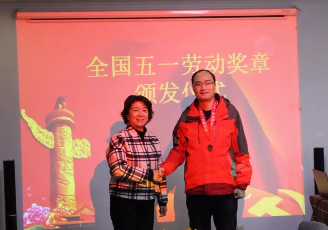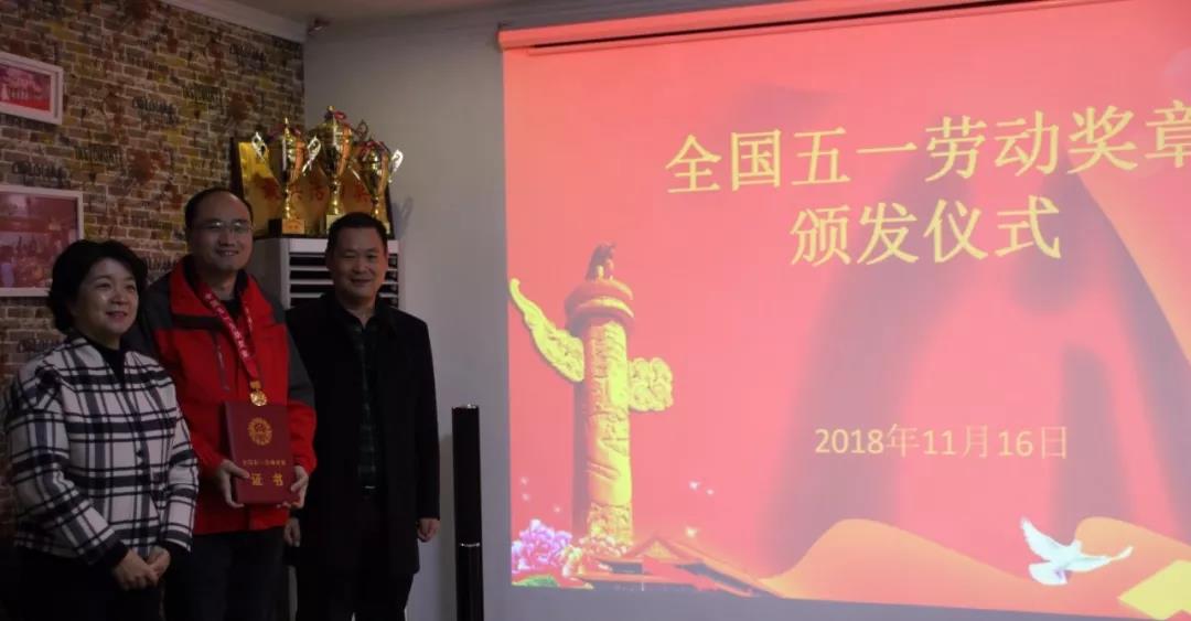 宜昌市總工會(huì)黨組成員、女職工委員會(huì)主任朱利民為勞模高鈺敏頒發(fā)全國(guó)五一勞動(dòng)獎(jiǎng)?wù)?/div>