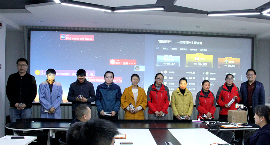 2018年11月17日,2018“吾踐吾行”微特精神主題演講賽在公司隆重舉行,總經(jīng)理聶道靜和各部門主管參加活動(dòng)并做為評(píng)委對(duì)演講者評(píng)分。此次比賽在公司內(nèi)部全程網(wǎng)絡(luò)直播,很多出差在外的人員也可以與現(xiàn)場(chǎng)互動(dòng)。此次活動(dòng)各部門積極踴躍參與,優(yōu)選出12名參賽選手現(xiàn)場(chǎng)演講,選手們結(jié)合微特精神闡述了自己一年以來(lái)對(duì)工作的感悟和啟發(fā)。