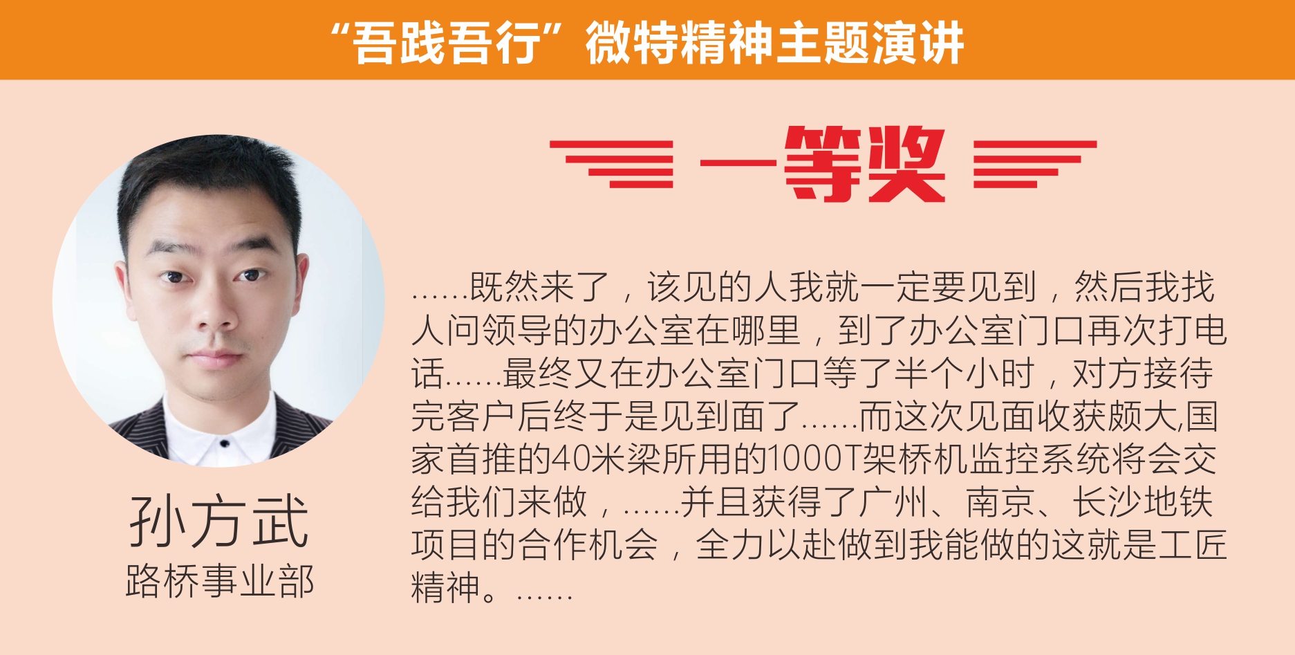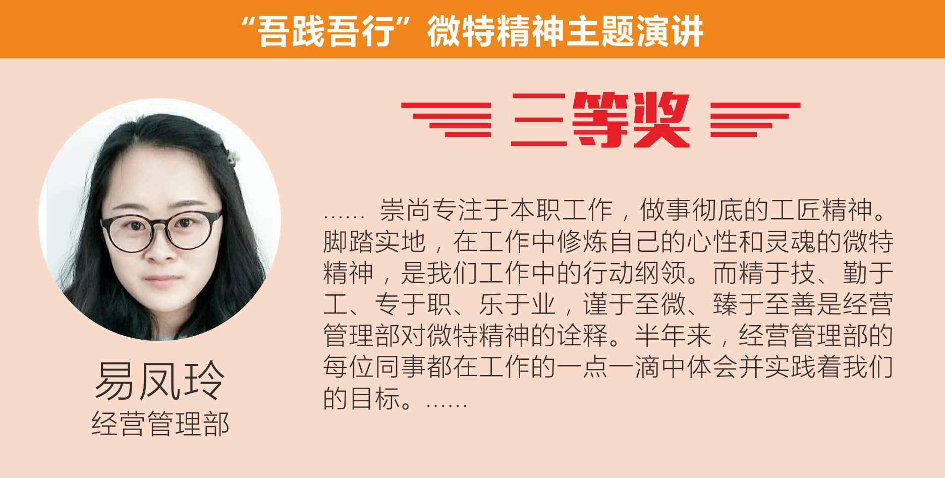 最后,聶總做了總結(jié)性發(fā)言。他對(duì)選手們精彩演講表示祝賀,對(duì)于公司員工在工作中能對(duì)微特精神有如此深的感悟甚是欣慰,對(duì)此次活動(dòng)表示了充分肯定。他希望公司員工能積極參加類似活動(dòng),鍛煉自我、增強(qiáng)自信,在工作中繼續(xù)發(fā)揚(yáng)微特精神。