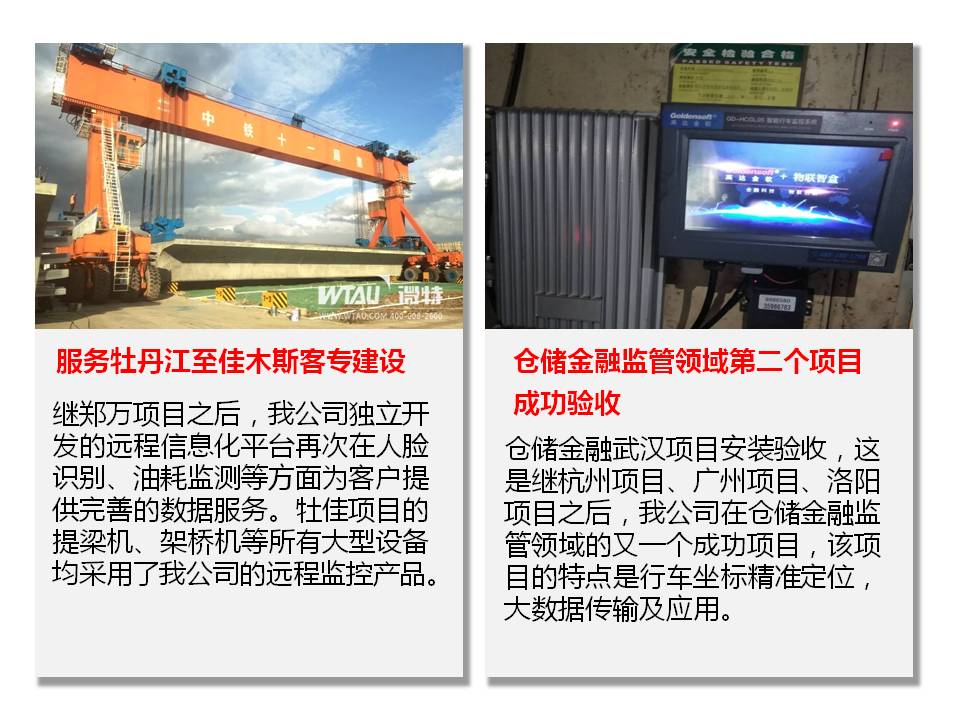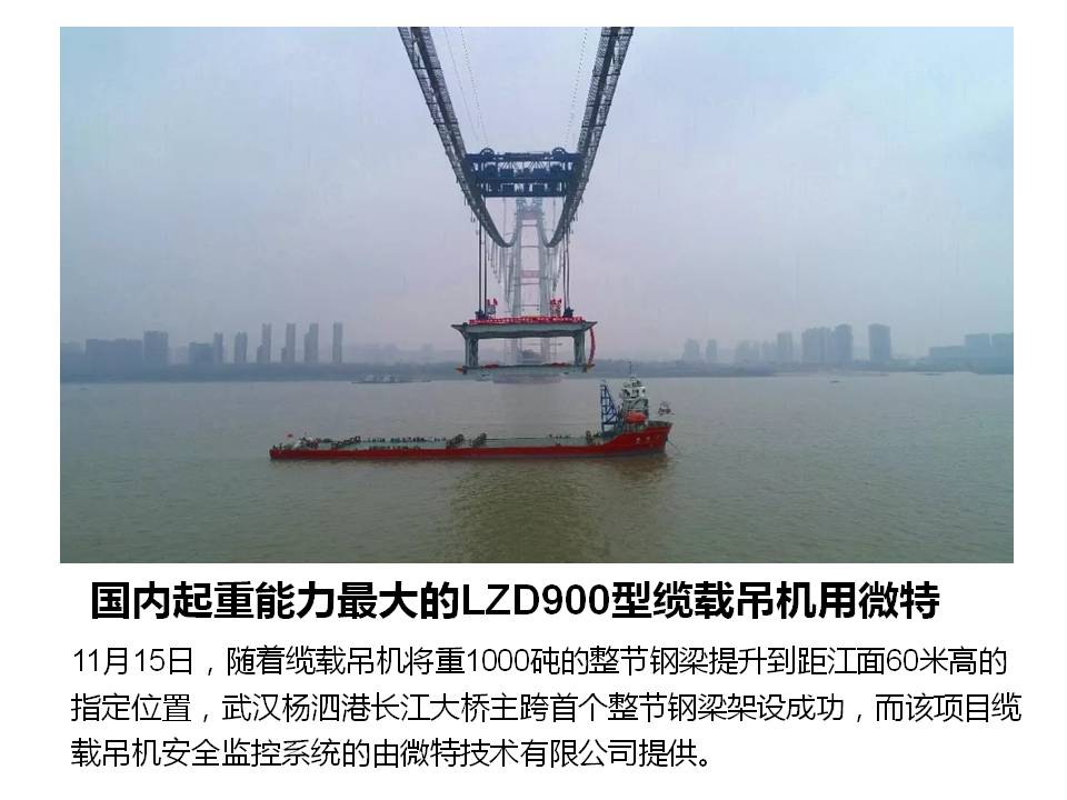 這一年,微特再次中標(biāo)三峽電站的所有壩頂門式起重機(jī)和廠房橋式起重機(jī)的安全監(jiān)控系統(tǒng)升級(jí)改造;成功進(jìn)入風(fēng)電裝備吊裝監(jiān)控、船用絞車安全監(jiān)控領(lǐng)域等;新的起重機(jī)施工過程點(diǎn)檢系統(tǒng)、防撞系統(tǒng)、壽命監(jiān)測(cè)系統(tǒng)投入使用。在大型裝備方面,2018年微特又摘獲數(shù)項(xiàng)中國(guó)起重機(jī)之最:國(guó)內(nèi)最大纜載吊機(jī)、最大的橋面吊、最大的廠房橋機(jī)安全監(jiān)控都采用微特產(chǎn)品,這再次證明了微特在大型重要起重機(jī)安全監(jiān)控方案的引領(lǐng)地位。