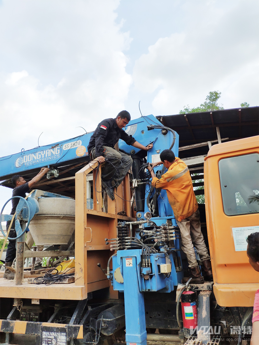 ▲圖為準(zhǔn)備進(jìn)入泗水現(xiàn)場(chǎng)吊車安裝的微特工程師