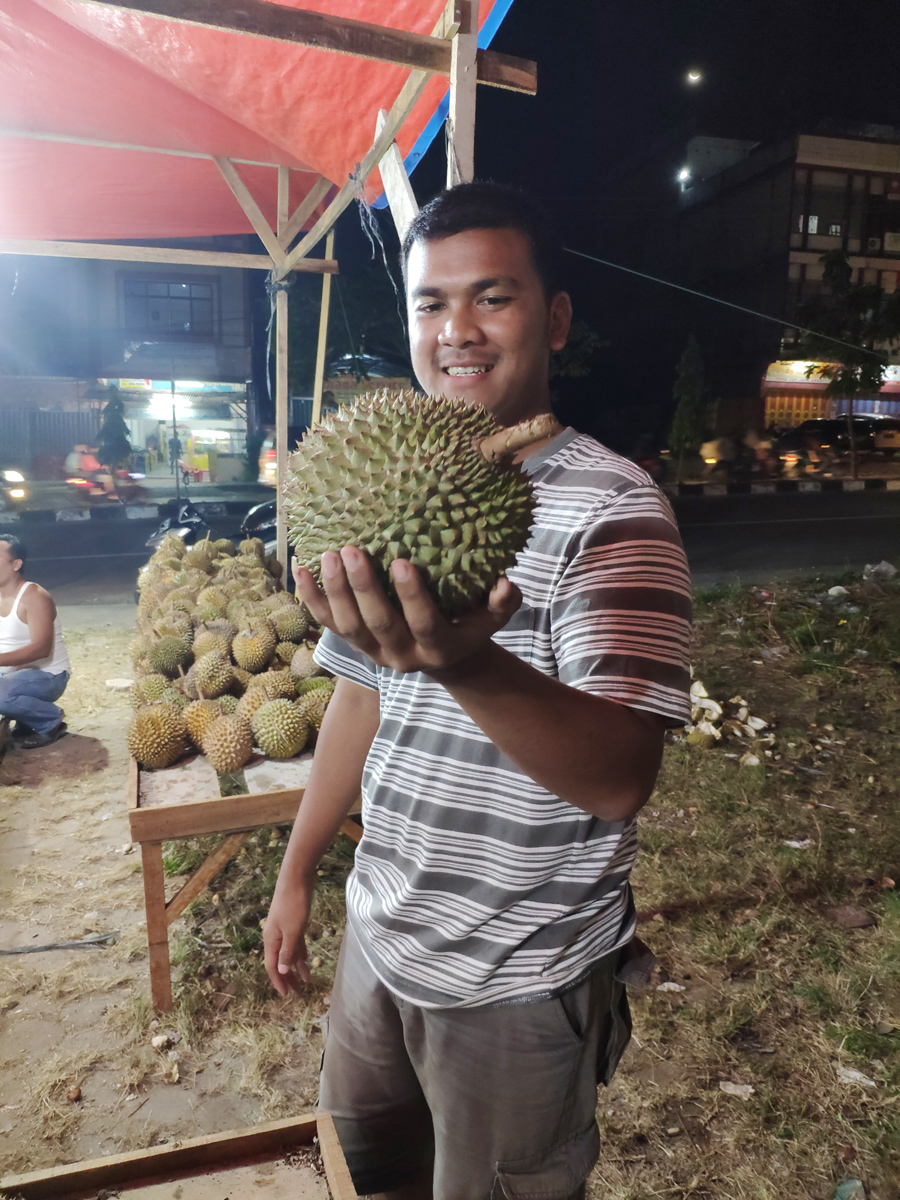 因?yàn)槊尢m與北干巴魯同在蘇門答臘島,棉蘭的小榴蓮在北干特別便宜,只需15000(約7.5人民幣)印尼盧比,就能飽飽吃上一整個(gè)榴蓮,是不是很劃算呢?吃完了榴蓮,味道太大怎么辦?往榴蓮殼里倒上水,等上三五分鐘,喝下去,消火去味兒,這可是當(dāng)?shù)厝瞬惠p易告知的絕技呢。