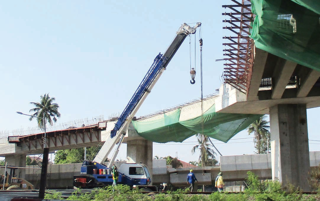 ▲泰國(guó)一工地上吊車正在吊裝作業(yè)