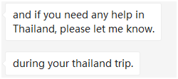 這句話(在你的泰國(guó)旅途中,如果需要幫助,請(qǐng)聯(lián)系我)出自很多泰國(guó)用戶之口,雖然很簡(jiǎn)單,但溫暖著在路上的微特人。在泰國(guó),語(yǔ)言的差異早已不是出行中的大問題,最大的問題是在曼谷以外的區(qū)域,打車難是最大的困擾,UBER/GRAB叫車基本無(wú)人應(yīng)答,甚至大街上都看不到一輛出租車,而客戶總是施以援助之手,安排司機(jī)接送。
