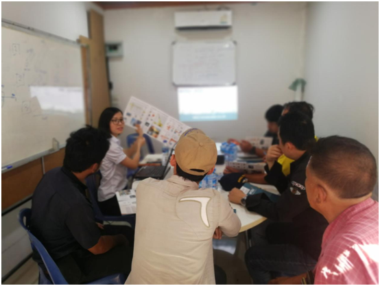 ▲微特海外銷售經(jīng)理與泰方用戶進(jìn)行技術(shù)交流