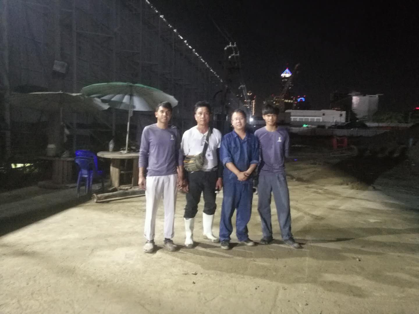 ▲夜晚,微特工程師(右二)與泰方接送人員順利抵達(dá)施工現(xiàn)場(chǎng)