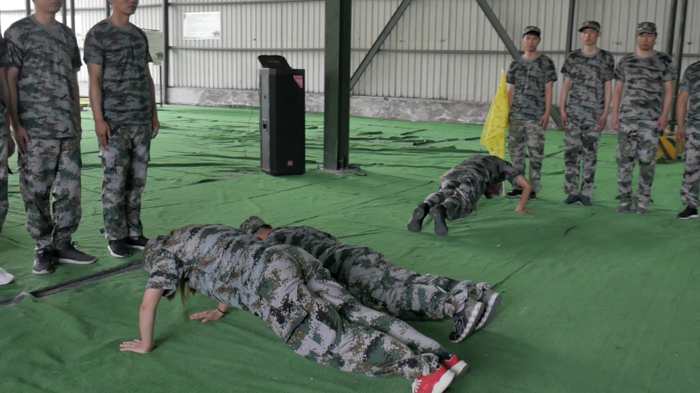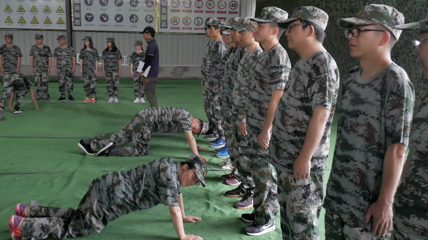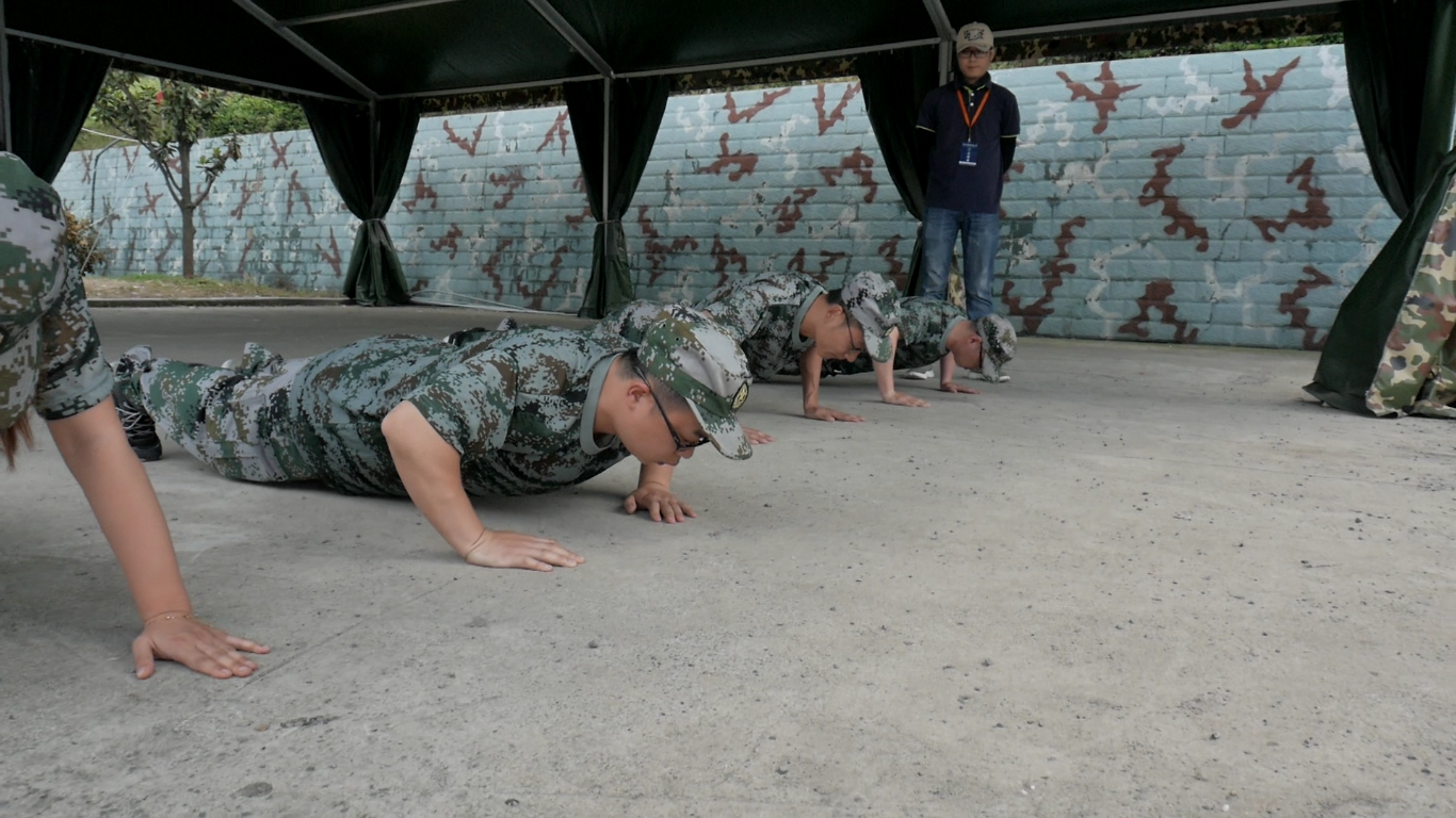 在成果匯報演練過程中,所有隊伍在細節(jié)方面均出現(xiàn)遺漏。初次成果匯報演練全軍覆沒,均被判定為不合格。教官認定為團隊錯誤,要求各隊隊長與指導員在每位隊員前做10個俯臥撐并對隊員說:請你認真一點!此次,隊長和指導員各自領到了140到160個俯臥撐。