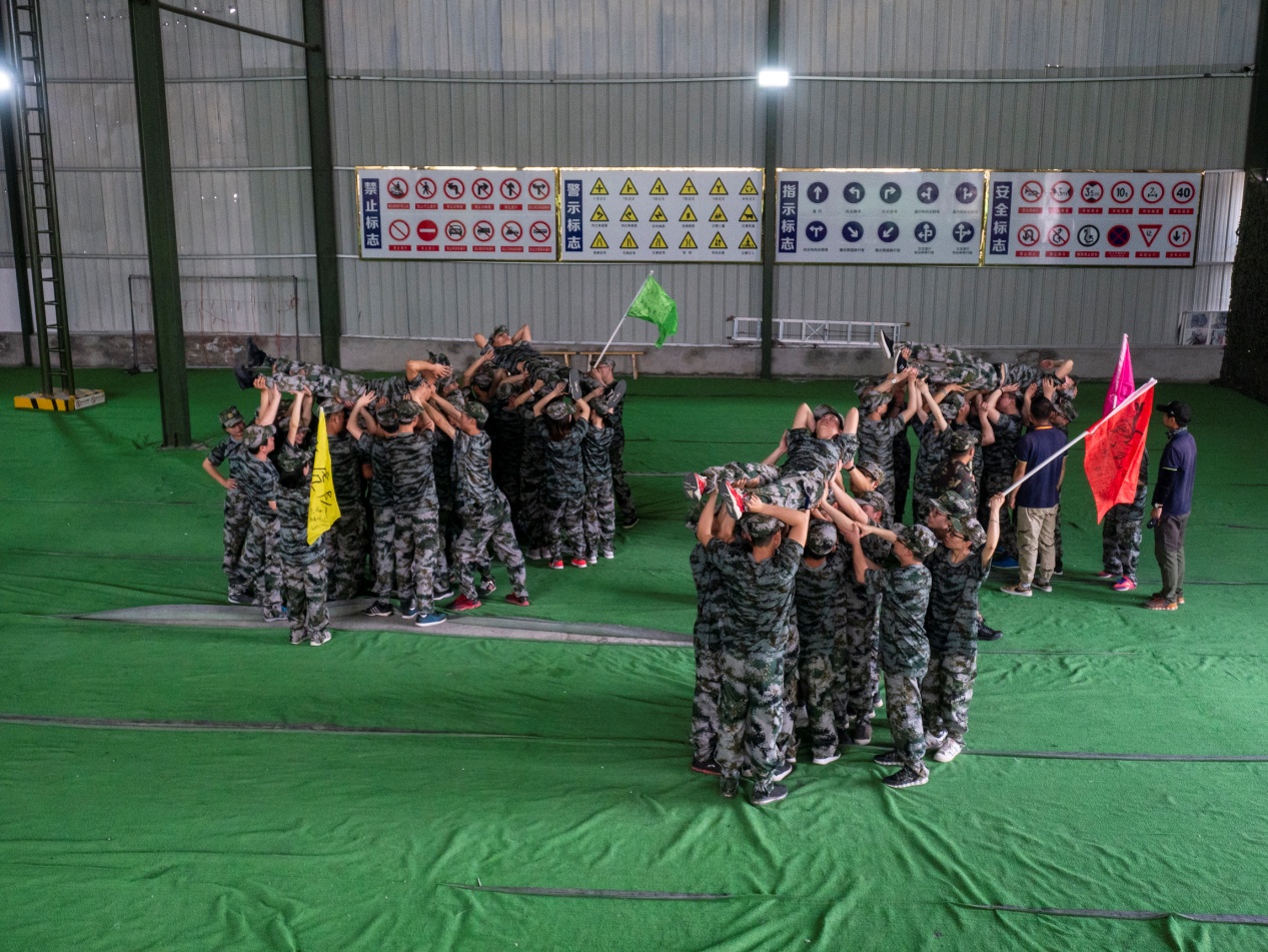 完成匯報演練后,教官要求將隊長舉過頭頂并堅持10分鐘。在熱情高漲的氛圍下,四個小隊輕松完成了此次任務。在共同努力,共同承擔之后,小隊完全融合,他們擁有著空前的凝聚力去戰(zhàn)勝并完成接下來的一個個任務。