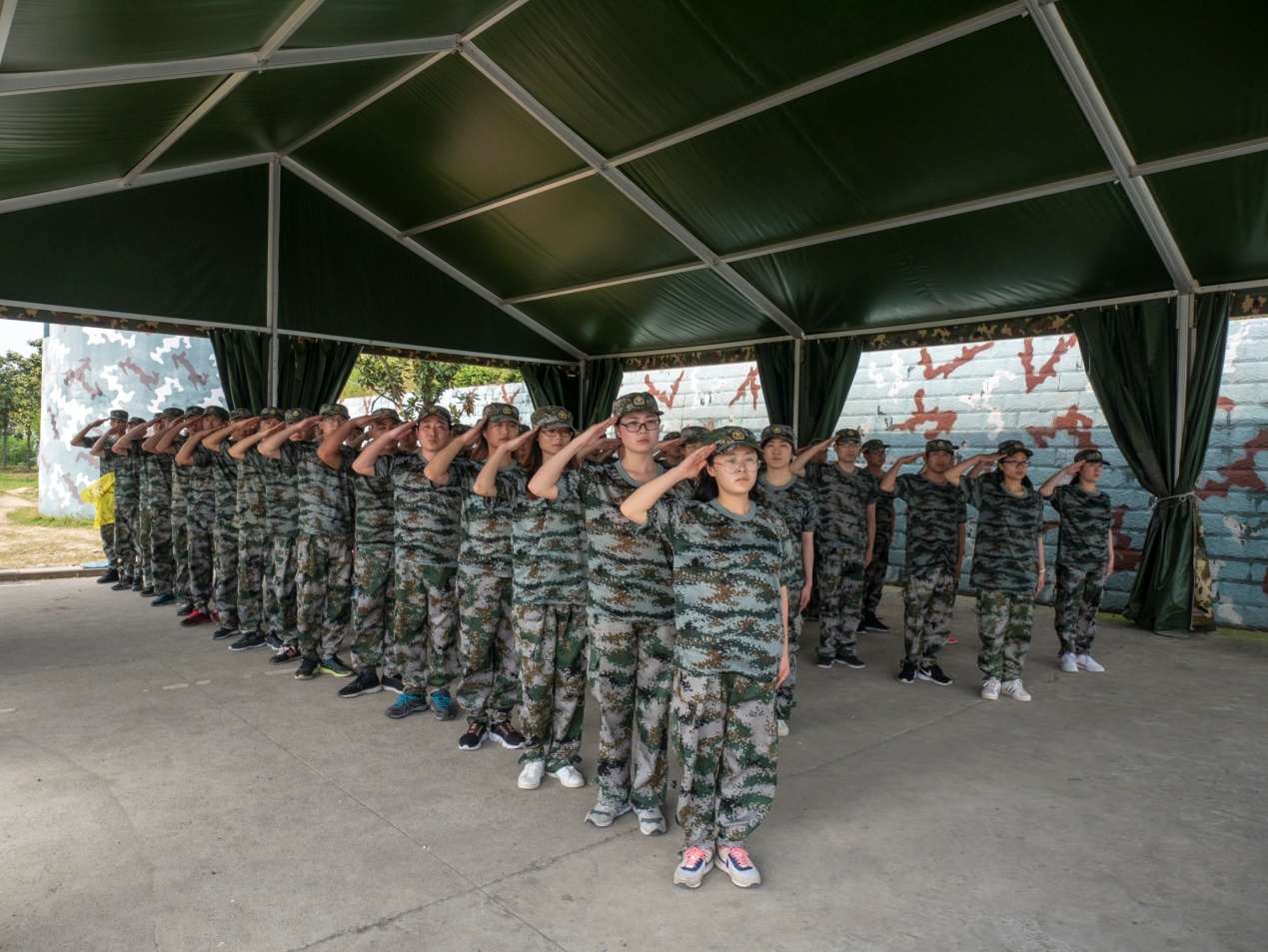下午所有隊員按教官要求的時間準時集合,進行軍姿、敬禮等相關科目的演練。雖然經過了午睡休息,但隊員們極速進入狀態(tài),相關科目操練火速推進。