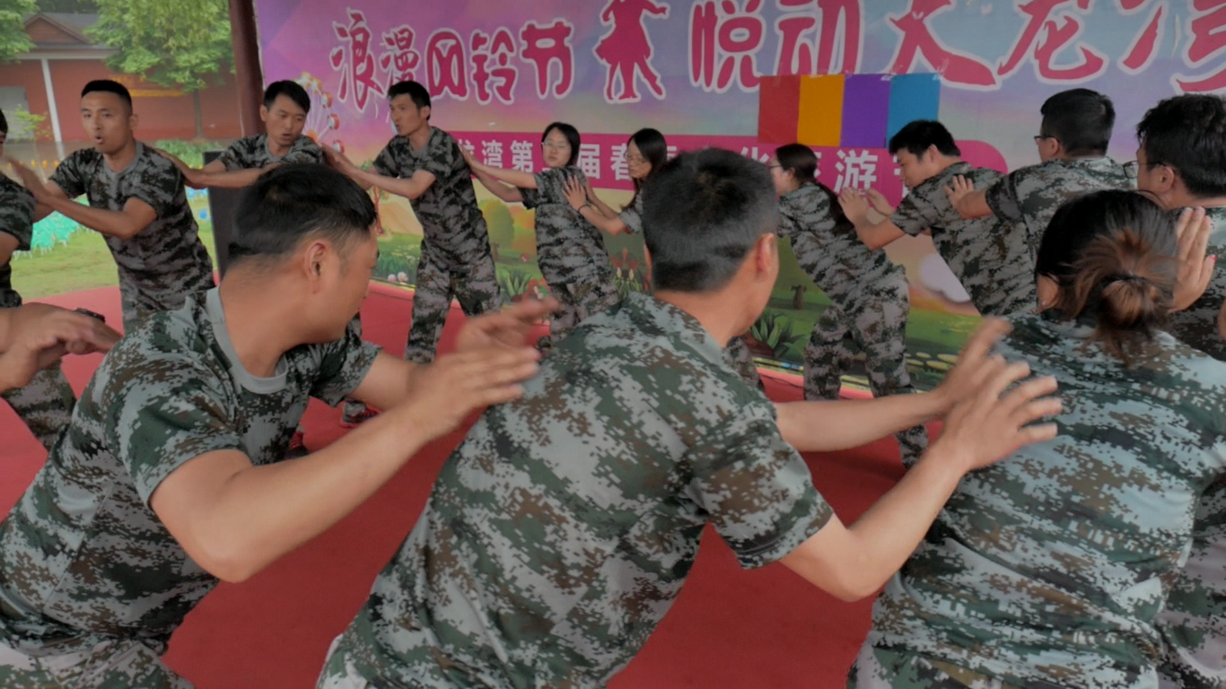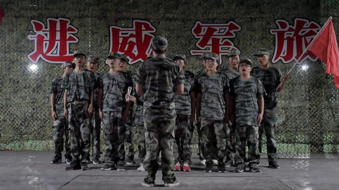 白天的訓練告一段落,晚上終于可以稍稍放松 一下了。教官為隊員們安排了玩出花來的兔子舞,逢3抓人的搞笑游戲。緊張之后的開懷大笑也是一種美妙的體驗。各小隊也準備了自己的團體節(jié)目和個人節(jié)目。獵豹隊在此時唱響了《我和我的祖國》,現(xiàn)場所有人都站起來了,揮舞著手機的燈光,響起了那熟悉的旋律: