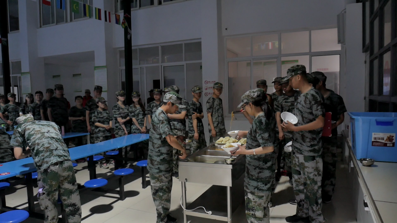 軍訓序幕拉起,教官紀律嚴明,直截了當。對換裝、列隊過程中各隊出現(xiàn)的錯誤進行懲罰,所有懲罰由各隊隊長及指導員以俯臥撐的形式進行,每次錯誤10個俯臥撐。此時,各隊連長和指導員各自領到了30到50個俯臥撐。同時,教官強調,兩天一夜的活動中,所有的問題將依此進行,每個階段進行現(xiàn)場結算,并由連長和指導員立即完成。集結號已然拉響,現(xiàn)場氣氛緊張起來。