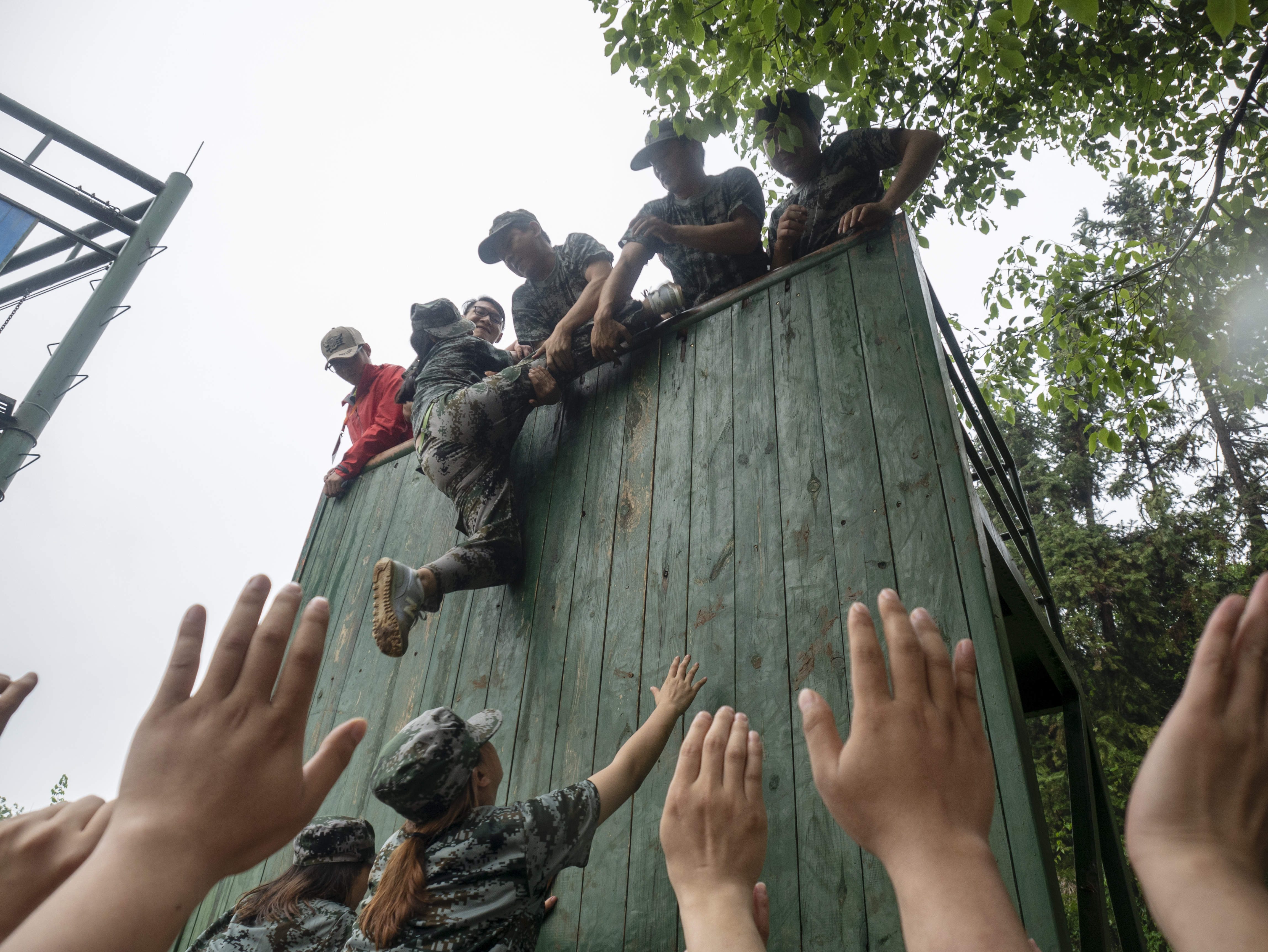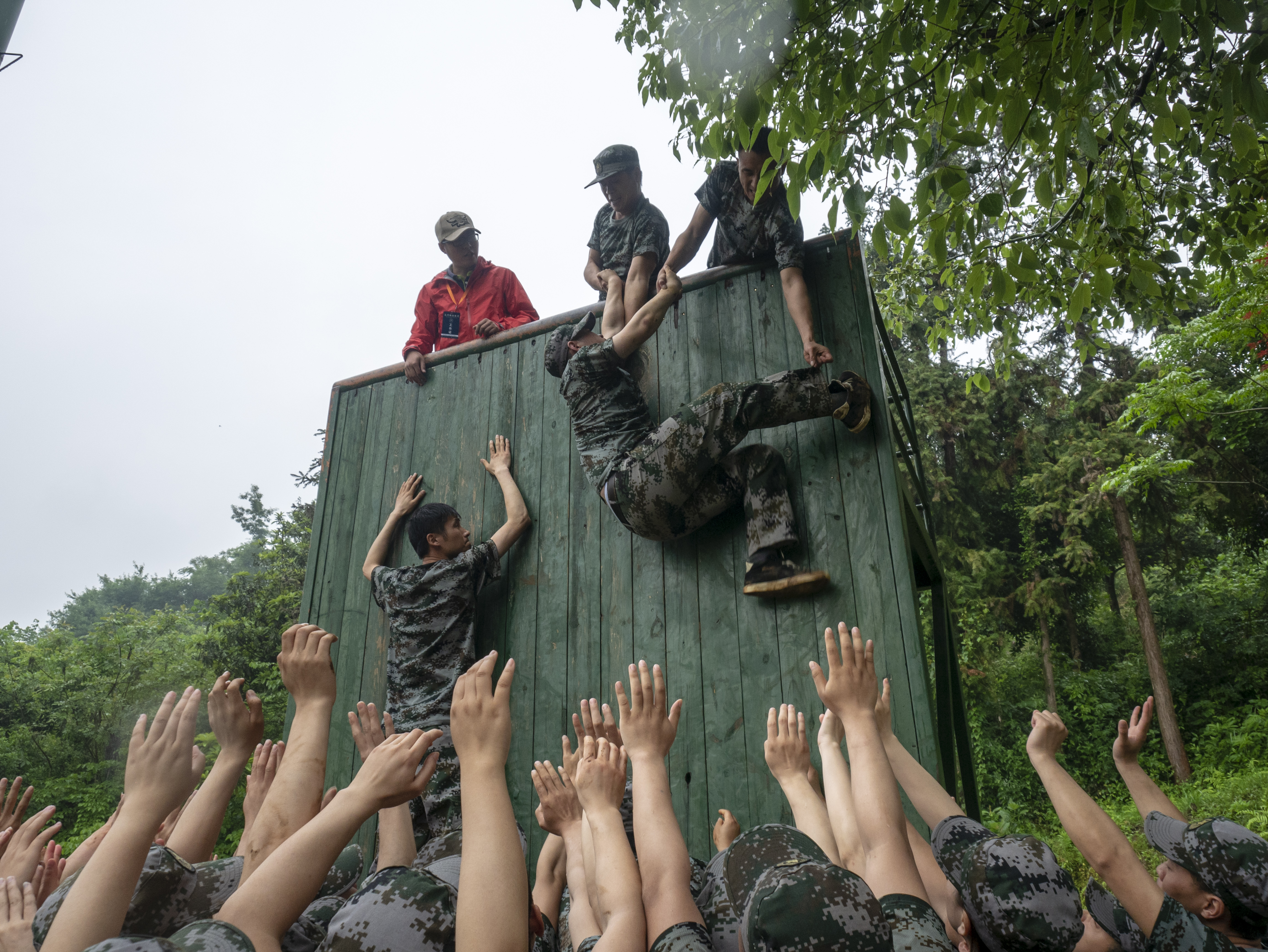 在項目開始之前,有隊員認為這個是不可能的,而且小雨讓地面和墻面都變得十分濕滑,增加了完成的難度。但教官的話語刺激了所有人,任何人都不愿意這兩天的努力劃為零,沒有人退卻。