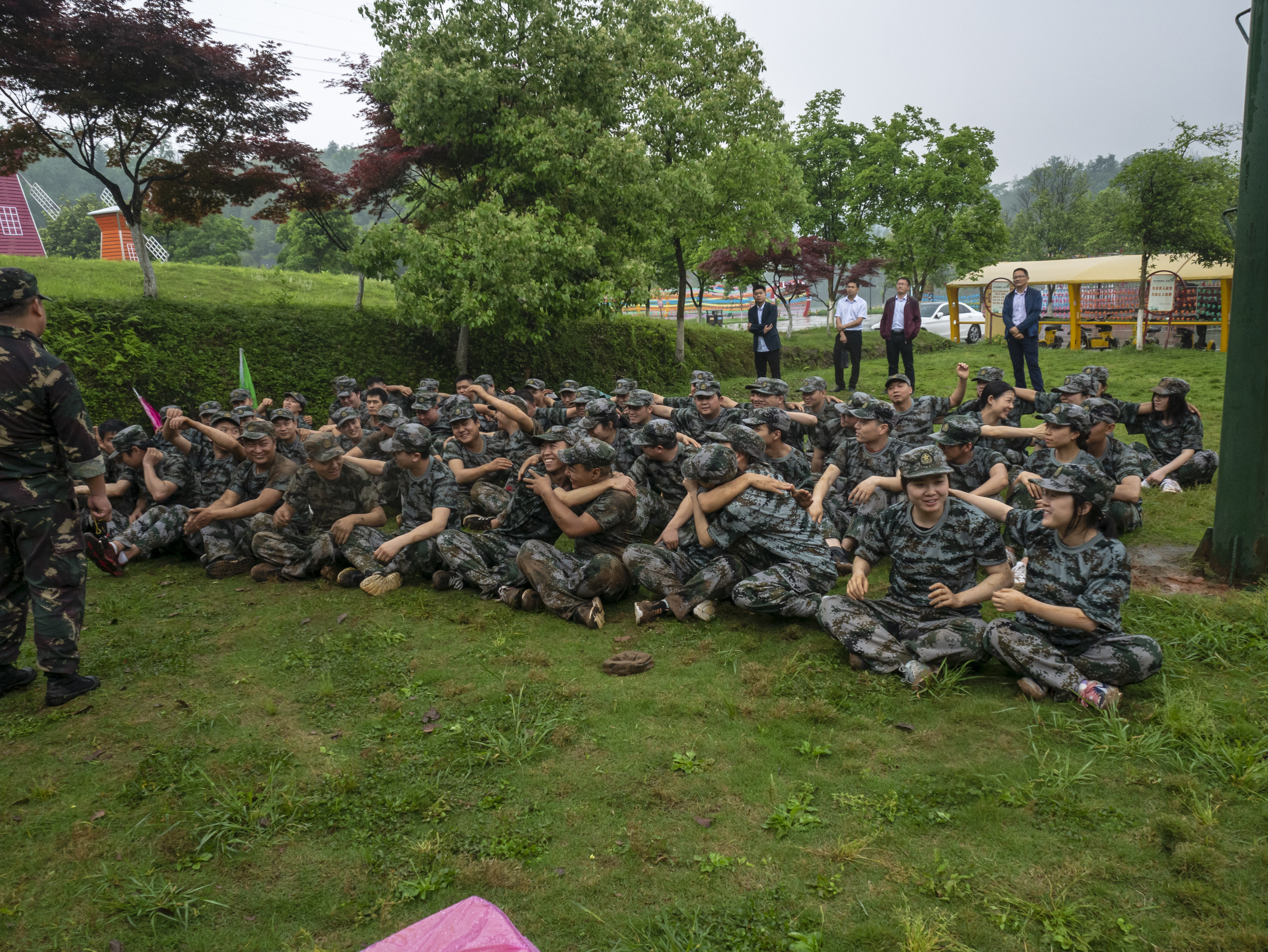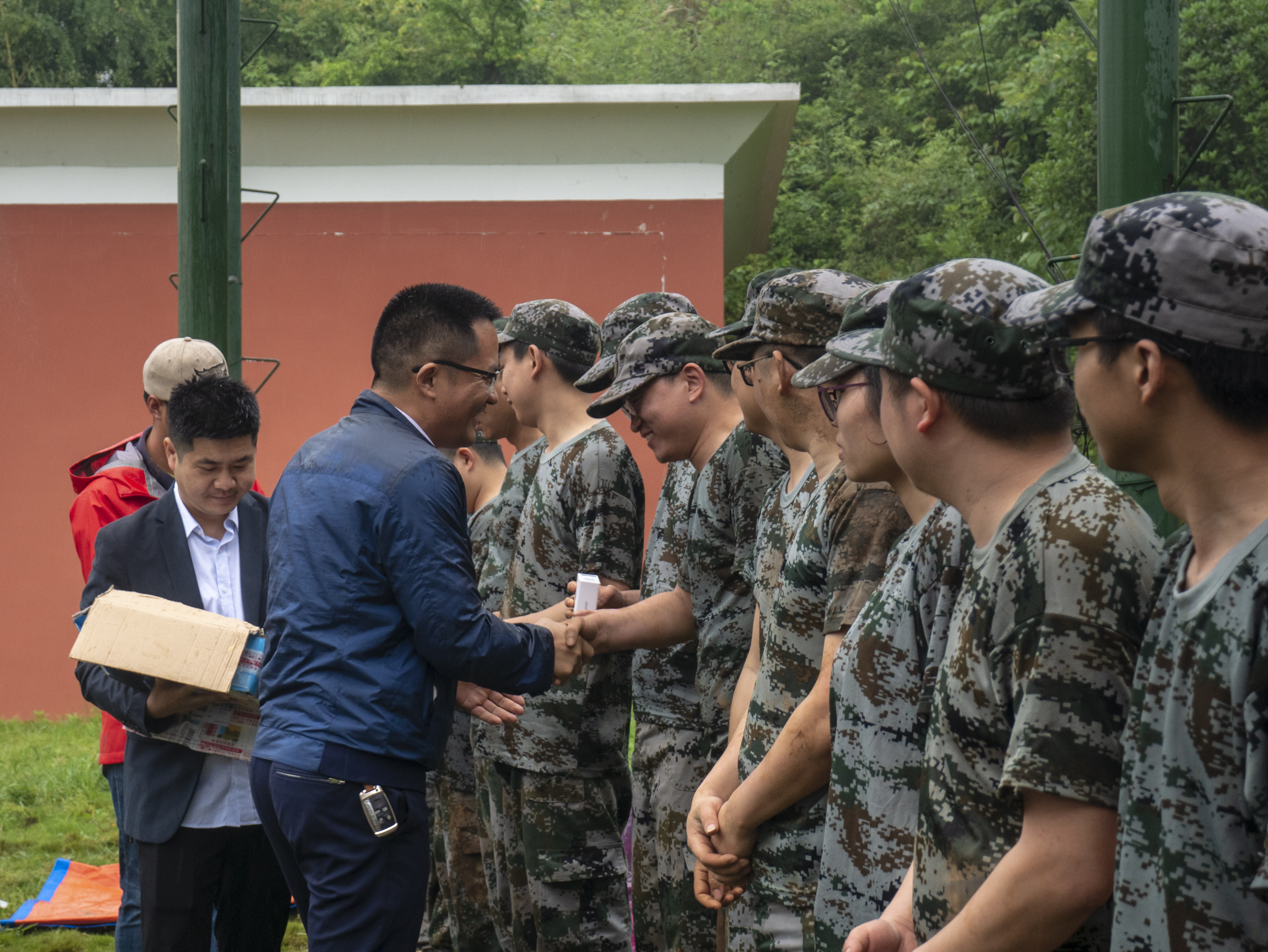 雨一直下,教官為隊員們分發(fā)了雨衣。雖然多了幾分涼意,但隊員的身上的熱情絲毫未減。