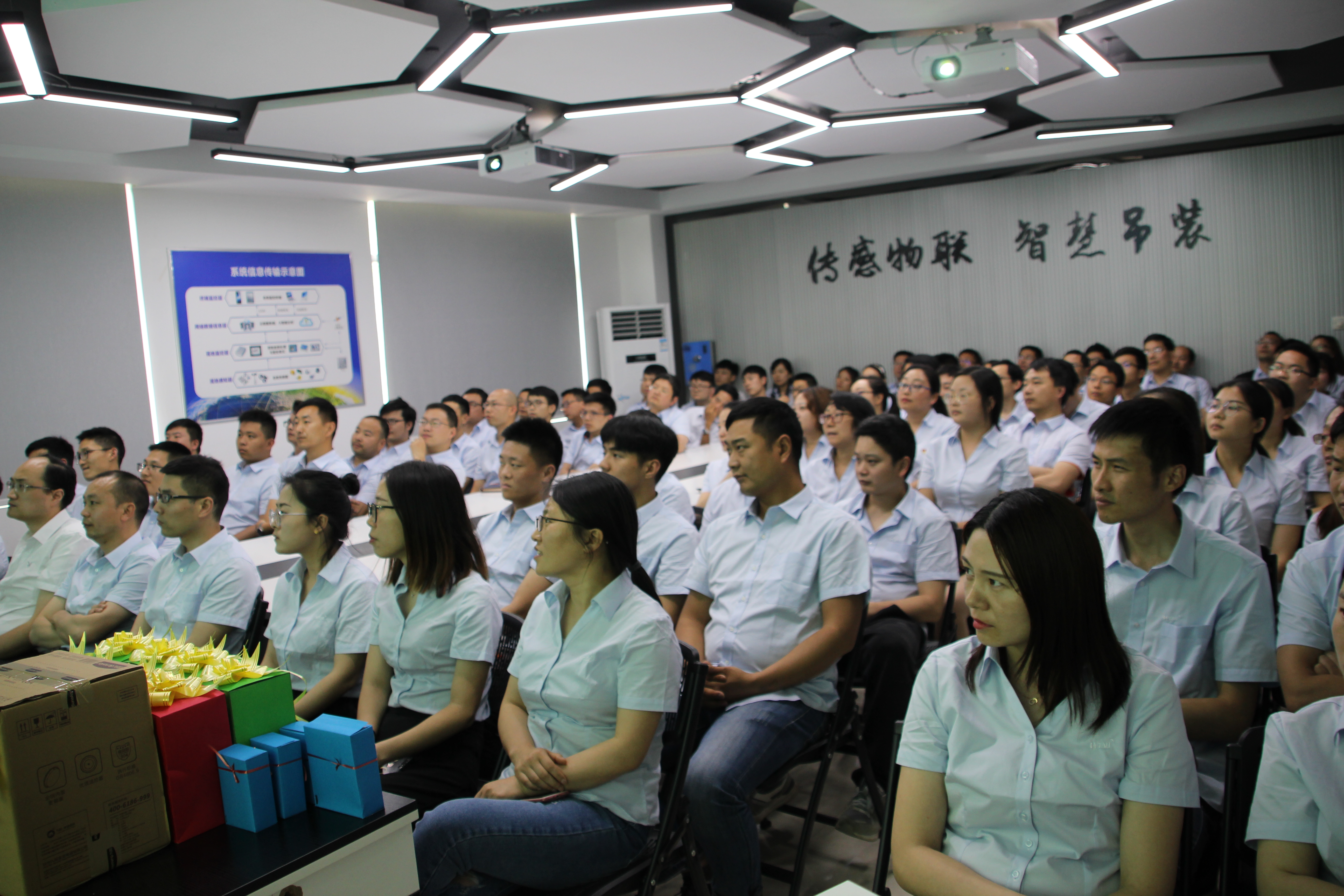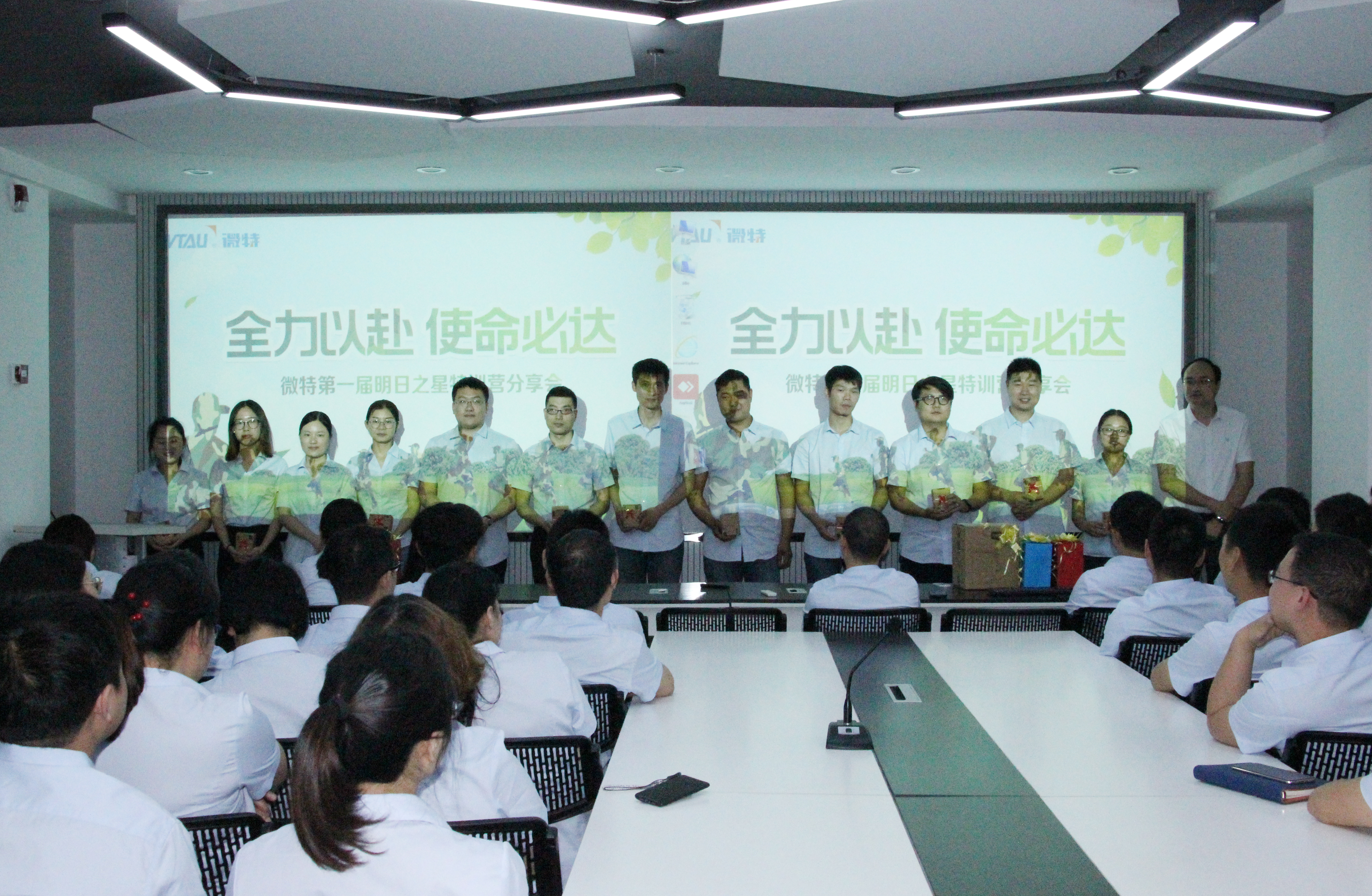 2019年5月11日,“全力以赴 使命必達 - 2019微特明日之星特訓營”活動匯報總結會在微特二樓多媒體會議室召開,會議由副總經理楊瑩主持。會議中,參會人員燃情唱響《我和我的祖國》,各小隊對特訓營活動進行了總結匯報,會議還表彰了一批在活動中表現(xiàn)優(yōu)異的代表??偨浝砀哜暶舫鱿藭h并做了總結性講話。