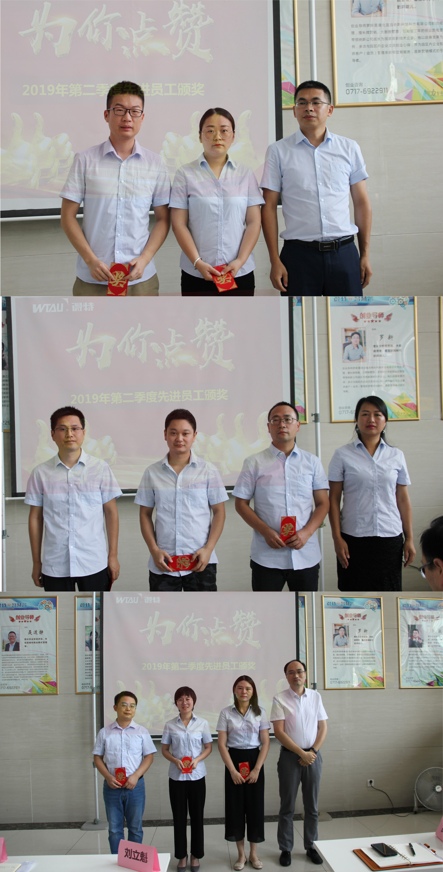 同時,會議還表彰了各部門在6月份進行的考核測評中成績優(yōu)秀的員工并頒發(fā)了獎金或獎狀,對二季度中各部門新老員工創(chuàng)建師徒關(guān)系進行了獎勵。
