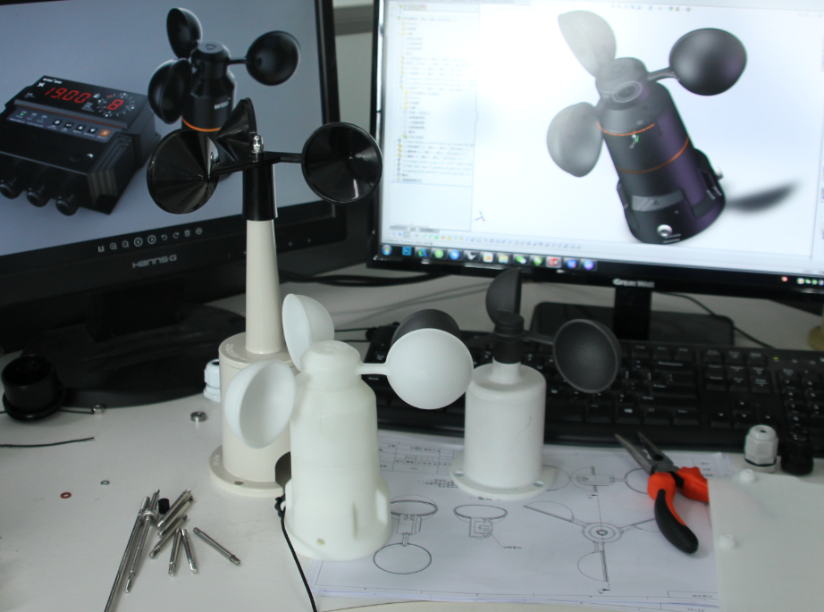 有了漂亮的外觀,接下來由結(jié)構(gòu)工程師和外觀工程師共同對內(nèi)部結(jié)構(gòu)進行設計,結(jié)構(gòu)設計不僅需要考慮元器件排布及安裝固定方式,同時也對其結(jié)構(gòu)性能進行有限元分析受力,比如外殼的整體強度計算,風速系數(shù)(風杯),材質(zhì)的選用等,在這個過程中決定了產(chǎn)品殼體的耐受程度,這是提升產(chǎn)品品質(zhì)的重要環(huán)節(jié),特別是風速傳感器的設計性能與外觀追求極致。