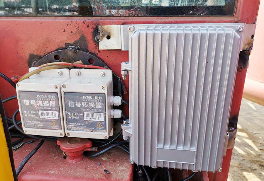 ▲安裝于德瑪格履帶吊上的微特WTSM-A型起重機(jī)安全監(jiān)控管理系統(tǒng)儀表