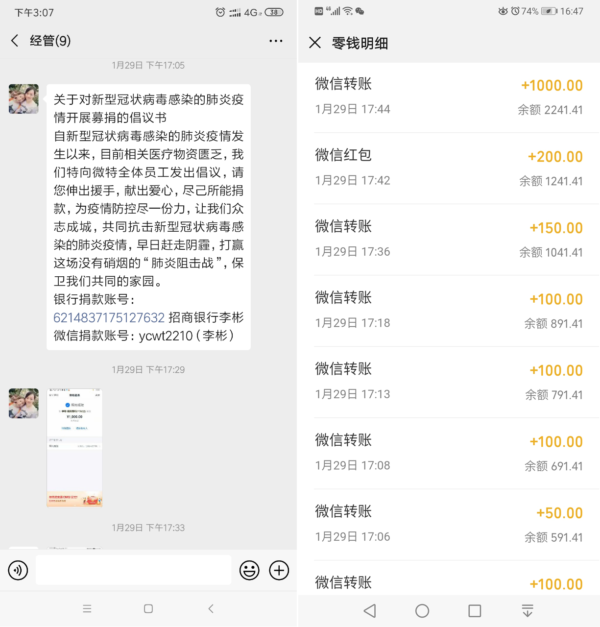 2020春節(jié)以后新型冠狀病毒肺炎疫情防控形勢嚴(yán)峻,宜昌普遍面臨醫(yī)療物資緊缺、防疫人員超負(fù)荷工作等嚴(yán)峻問題。微特公司緊急號召在職員工捐款捐物,為緩解醫(yī)療物資缺乏、緩解疫情蔓延貢獻(xiàn)力量。1月29日,微特在公司內(nèi)部微信群發(fā)起《募捐倡議書》,假期中的各地員工紛紛響應(yīng)慷慨解囊,獻(xiàn)出愛心。