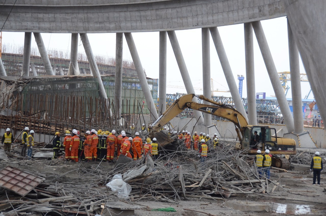 對冷卻塔的施工,是一個(gè)土建的施工。因?yàn)樗芨?,需要搭一個(gè)平臺一層一層地上去。這個(gè)平臺上面要施工,所以要站人,底下有一些通道,上面的平臺塌了之后,等于直接把通道壓塌了,通道下面有作業(yè)人員。
