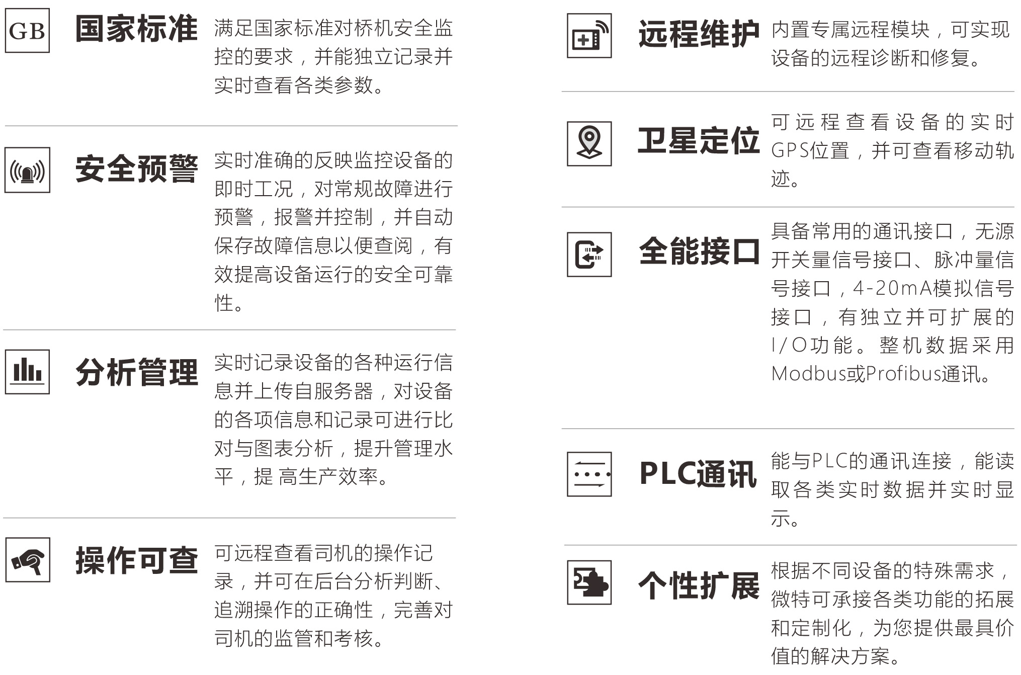 微特起重機遠程安全監(jiān)控管理系統(tǒng),是微特公司根據(jù)國家《起重機安全監(jiān)控管理系統(tǒng)》新標準研制出來的,針對于各類架橋設(shè)備的改造及新標準的強制實施,同時也可用于其他領(lǐng)域各類起重施工設(shè)備。該系統(tǒng)對設(shè)備的運行進行全方位的安全實時監(jiān)控,避免因操作者的疏忽或失誤而造成的安全事故,有效地保證設(shè)備的安全使用。