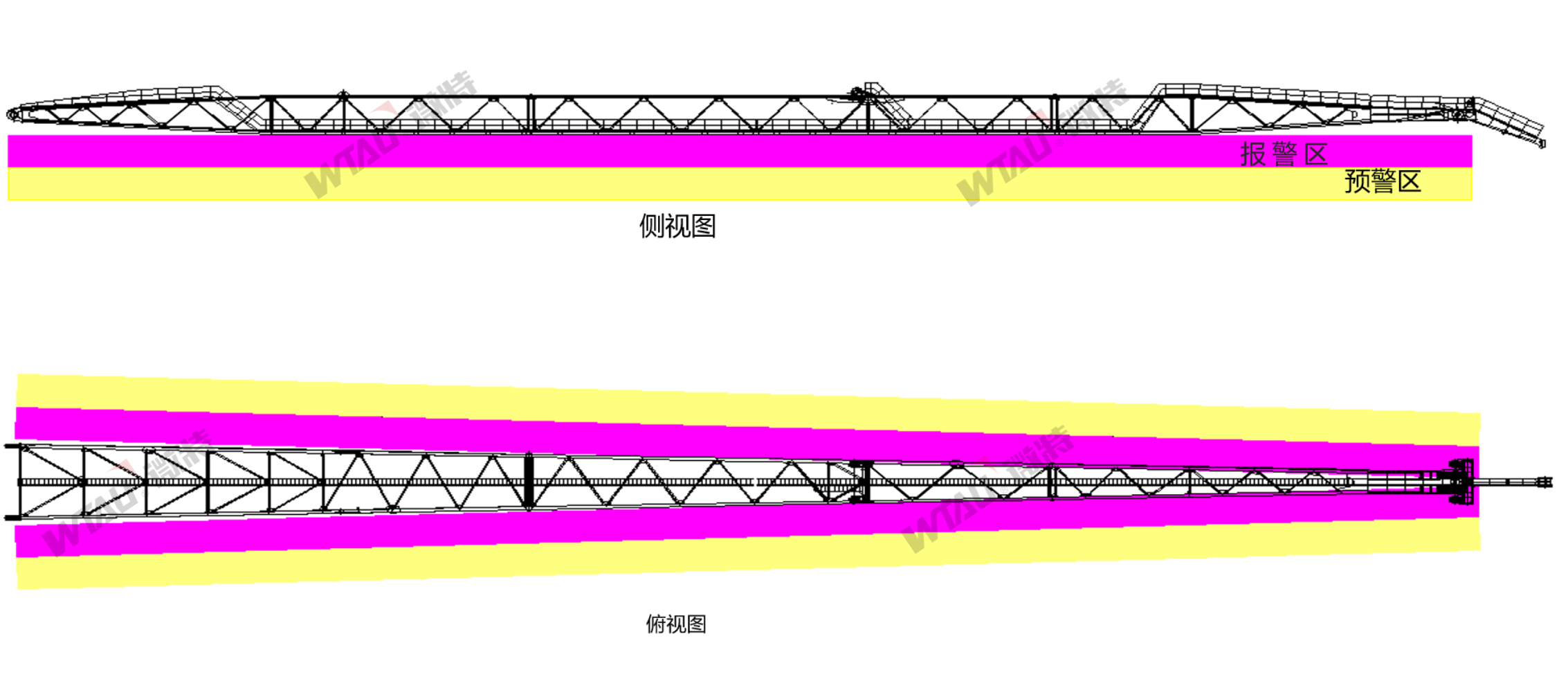 2.監(jiān)測(cè)臂架中部三面域,精確檢測(cè)物體,提供報(bào)聲、光預(yù)警和報(bào)警提示,預(yù)警/報(bào)警區(qū)域可個(gè)性化調(diào)整。