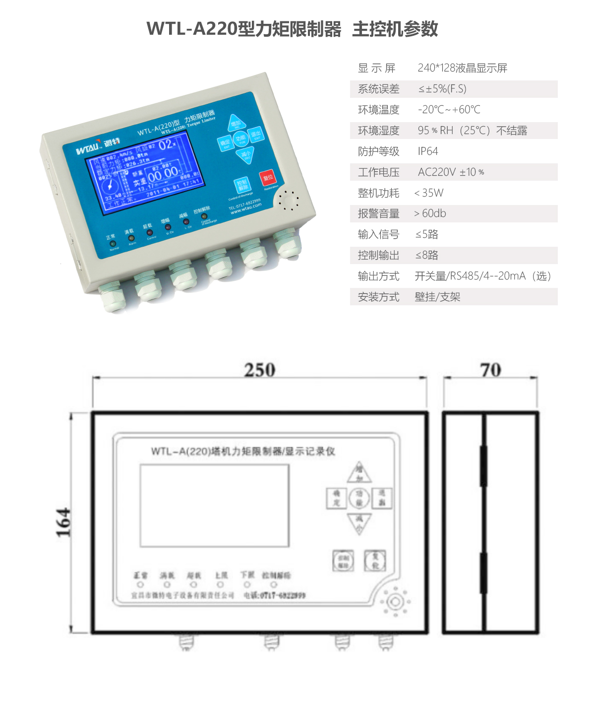 WTL-A220力矩限制器主機(jī)是塔機(jī)遠(yuǎn)程安全監(jiān)控系統(tǒng)專用控制主機(jī),該產(chǎn)品獲得湖北省重大科學(xué)技術(shù)成果獎。 WTL-A220力矩限制器分為3限位、5限位、6限位與遠(yuǎn)程型、單機(jī)型配制。系統(tǒng)可實現(xiàn)對塔機(jī)吊重、小車幅度、吊鉤高度、回轉(zhuǎn)方位、實時風(fēng)速、GPS定位進(jìn)行監(jiān)控,同時具有可實現(xiàn)數(shù)據(jù)遠(yuǎn)程傳輸,遠(yuǎn)程監(jiān)控塔機(jī)工況等其它定制化功能。